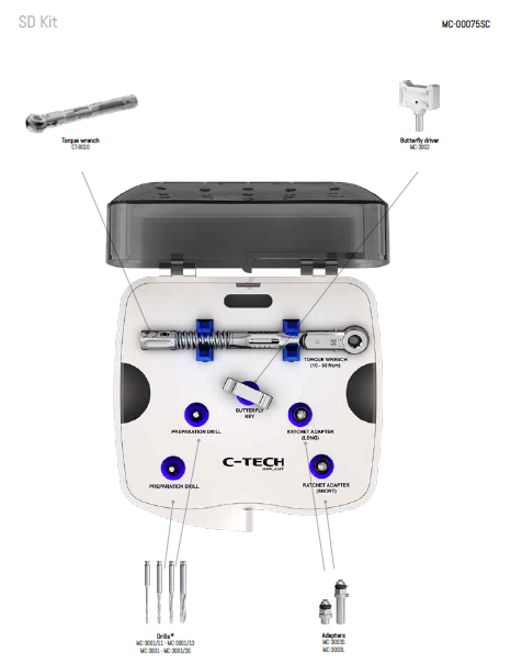 C-tech zapewnia modele SD z kołnierzami dziąsła i bez nich, co pozwala lekarzowi lepiej radzić sobie z przypadkami o różnych grubościach dziąseł.